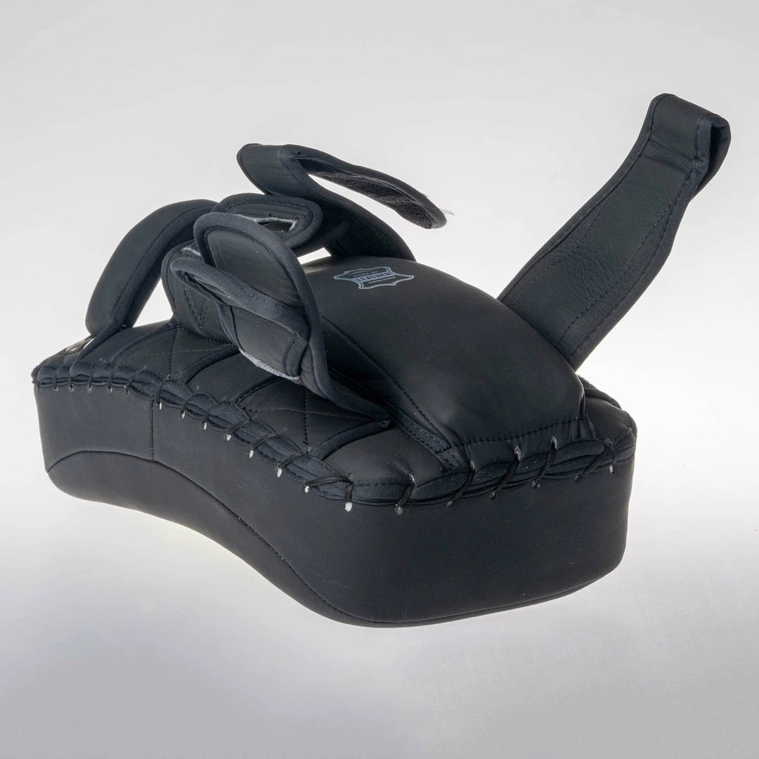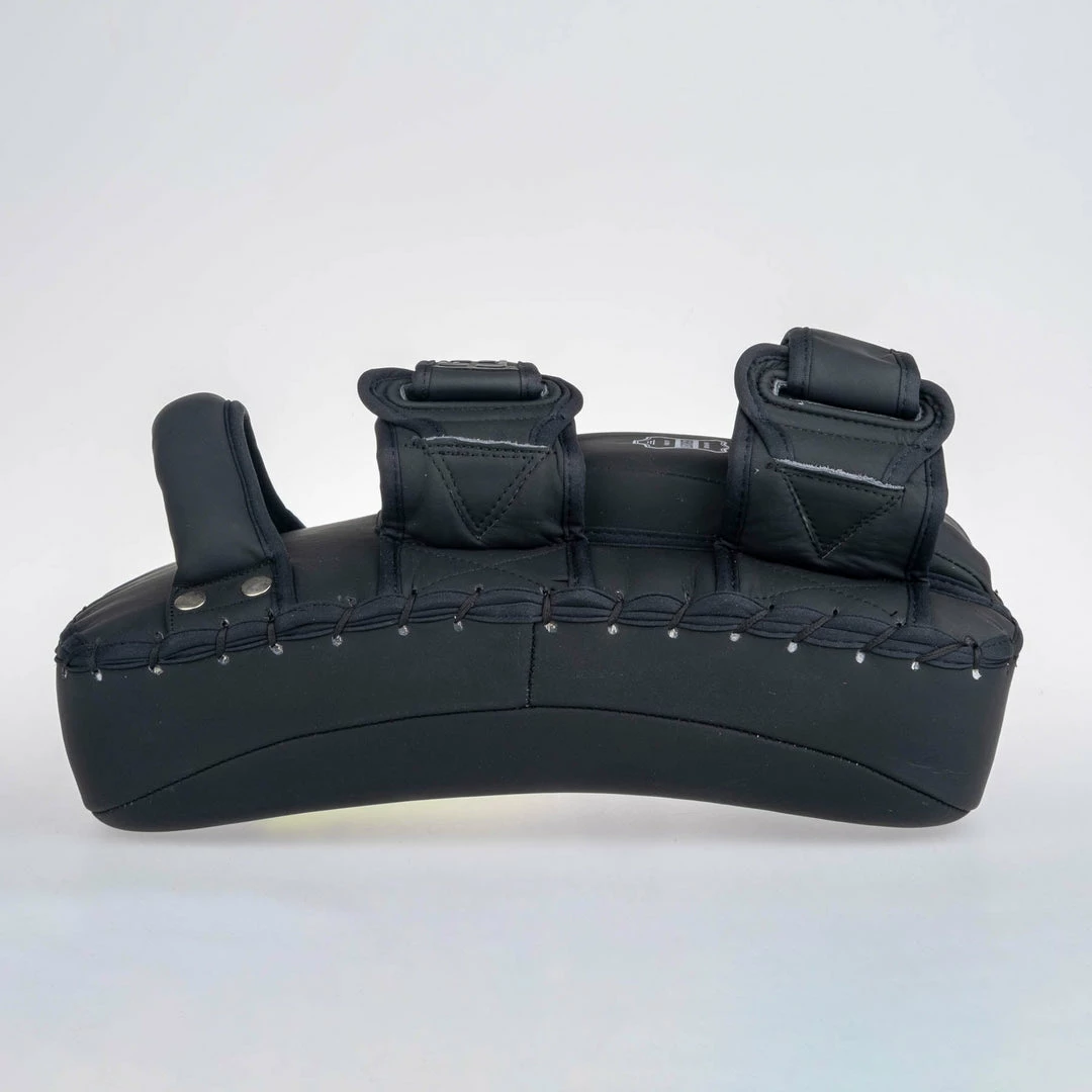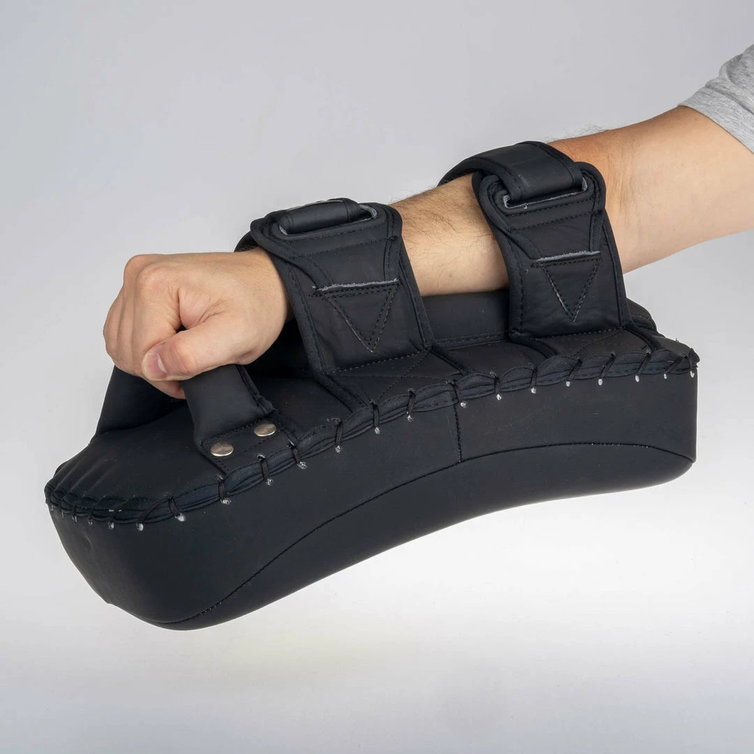 Well padded Thai style pads for intensive training including round-kicks and knees. Solid handle in combination with two velcro straps ensures very stable grip with no spinning. Extra soft additional padding under forearm gives great support to your hand.