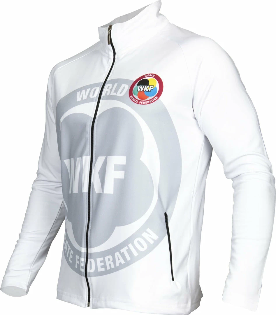 Super casual and comfortable and equipped with a lot of sportiness, this is how the “WKF Gradient” training jacket by Hayashi presents itself. The soft zip jacket with hood is made of a high-quality interlock jersey and has a high level of warmth. Despite its figure-hugging cut, the “Gradient” is a real movement artist. The raglan sleeves and narrow cuffs at the ends ensure maximum comfort. Two side zip pockets serve as a safe storage place for important little things, and thanks to the hood in the “Gradient” training jacket, the wind outside can blow hard around your ears. Hayashi’s design relies on the typical elements and a color gradient of the main components, black and red. Large print elements on the back give your passion for karate the necessary expression.