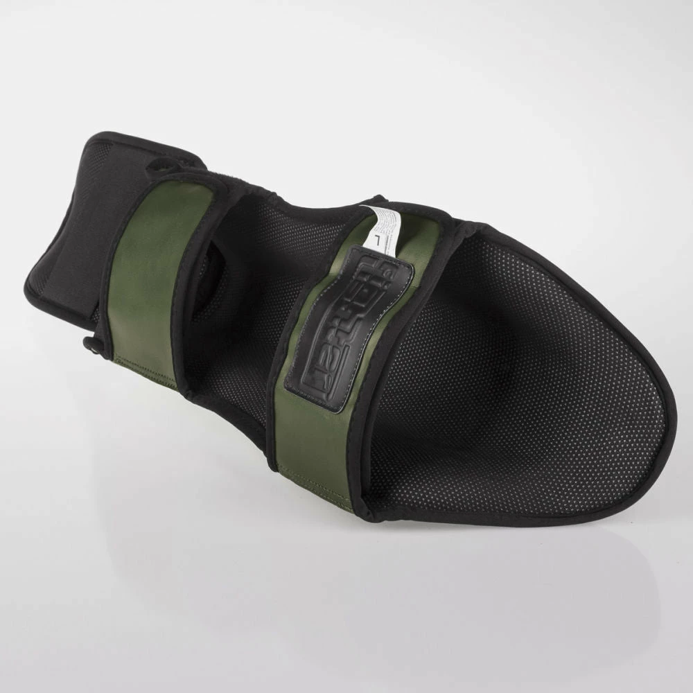The Fighter Shin Instep Guards have ergonomic shape for an improved fit with less shifting or rotating. Sleek design yields the highest capacity for speed without sacrificing protection. Double layer of padding directly over the shin for additional protection. Lined with the slip resistant SRM material with quick dry function.
