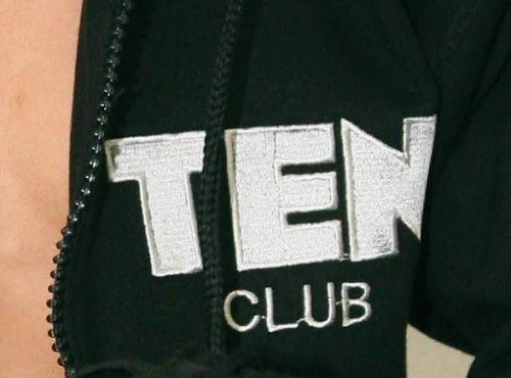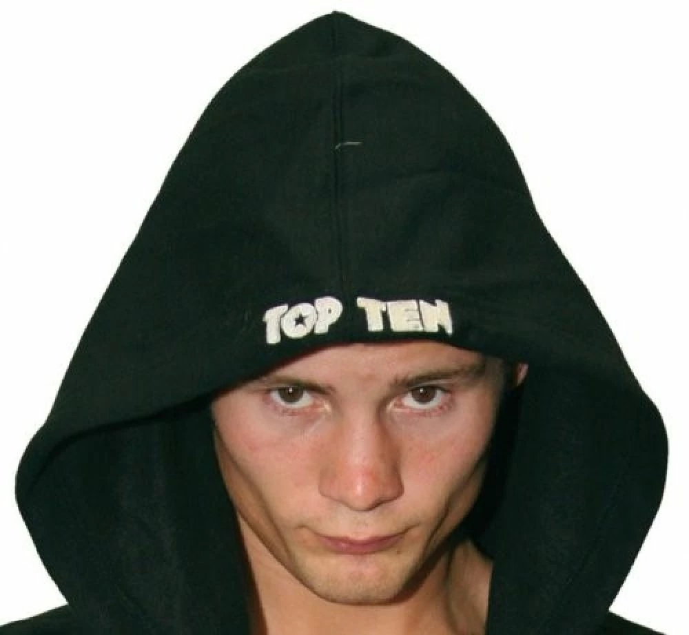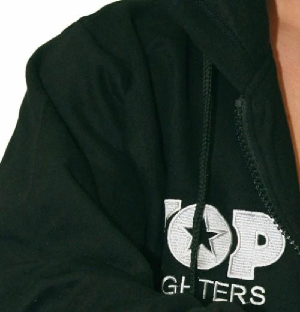 Embroidered “TOP TEN Fighters Club” hooded Sweatshirt made of poly/cotton.