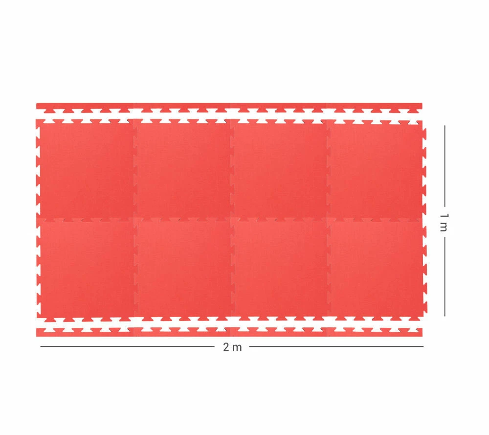 19.7 x 19.7 inch , 50 cm x 50 cm mats = 2 square meters - each piece has also the straight rim on one side.